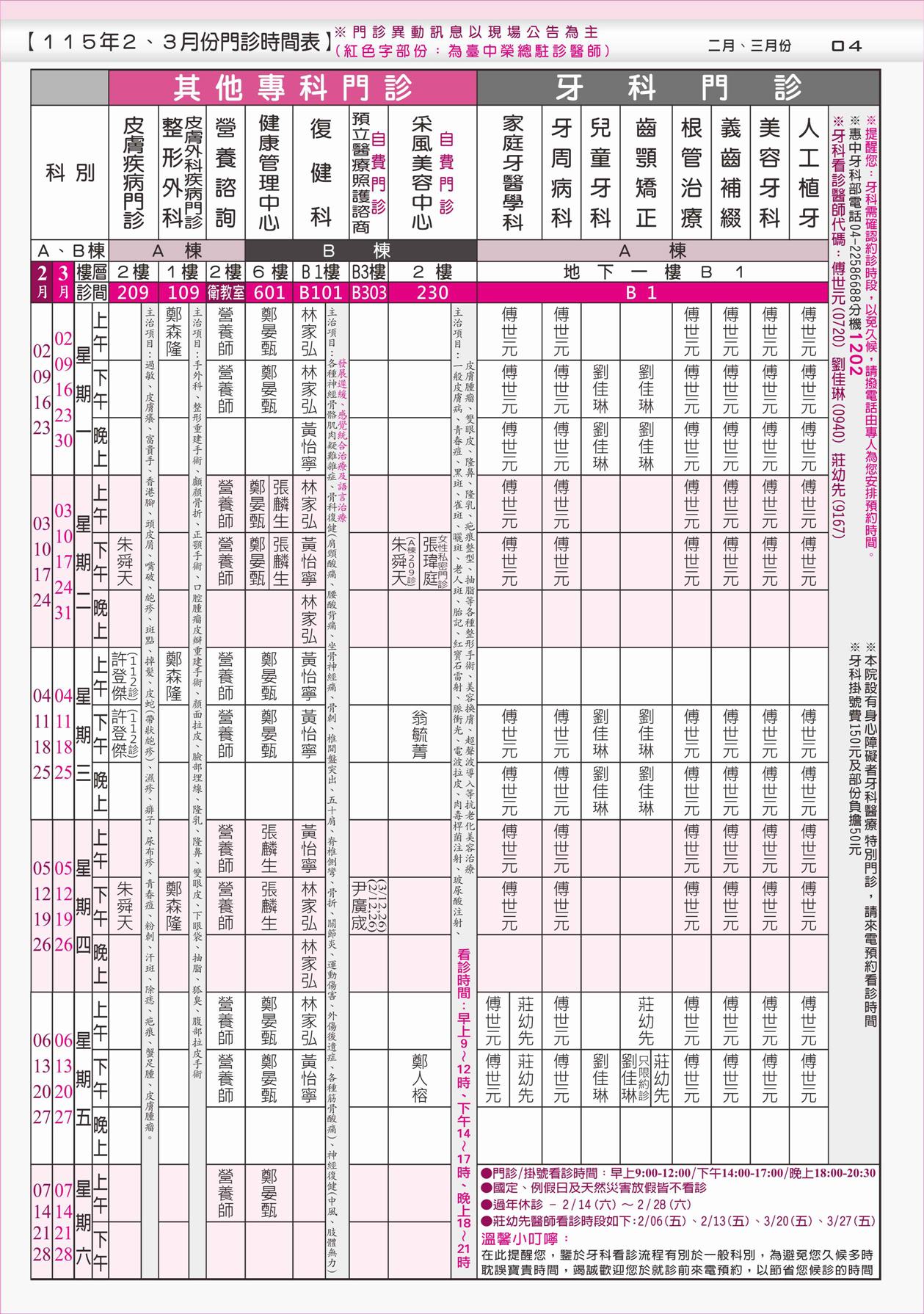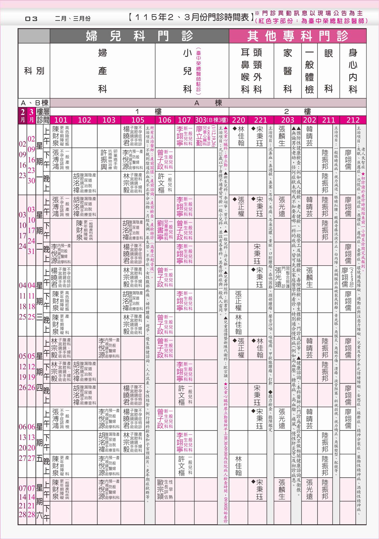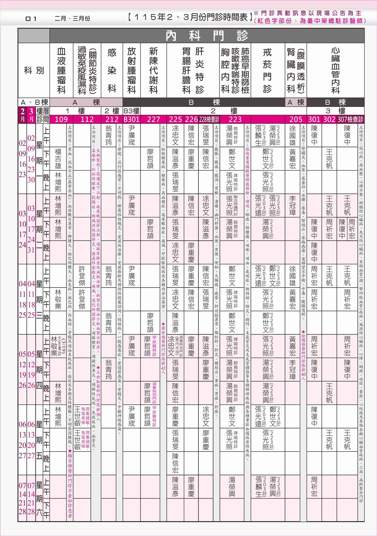 門診時刻表